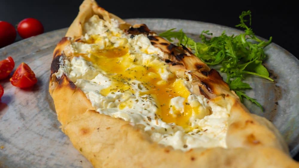 Homemade pastry, minced meat, vegetables, tahini sauce