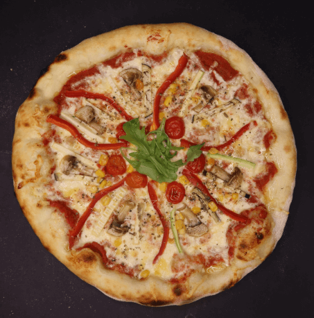 Pizza sauce, edam, gorgonzola, smoked cheese, mozzarella,